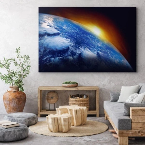 Obraz na płótnie - Wschód słońca nad błękitną planetą - 70x70 cm
