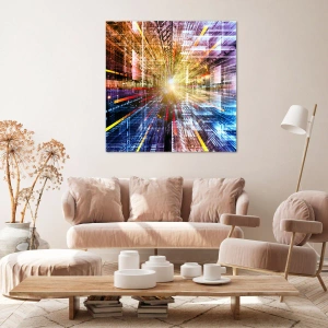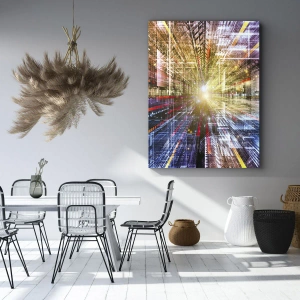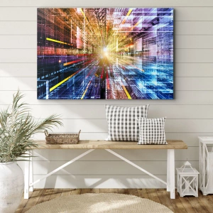 Obraz na płótnie - Dynamiczne światła w futurystycznym korytarzu - 160x50cm - Świetlny korytarz - Nowoczesna dekoracja ścienna do salonu i sypialni ARTTOR