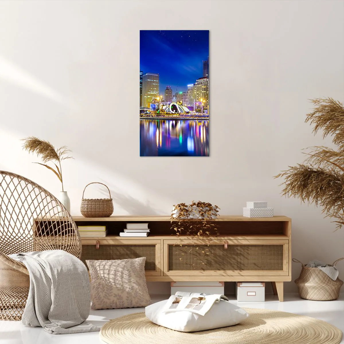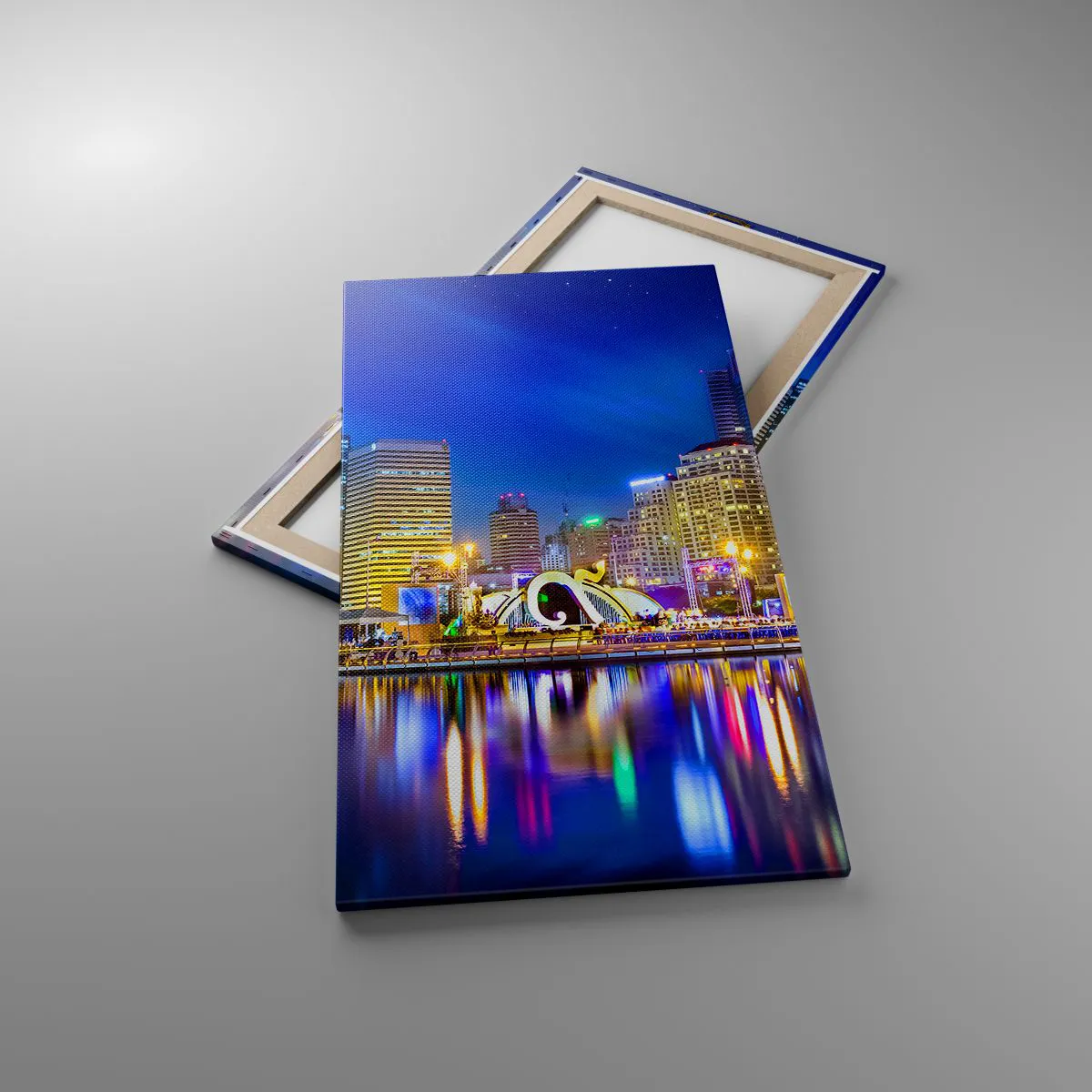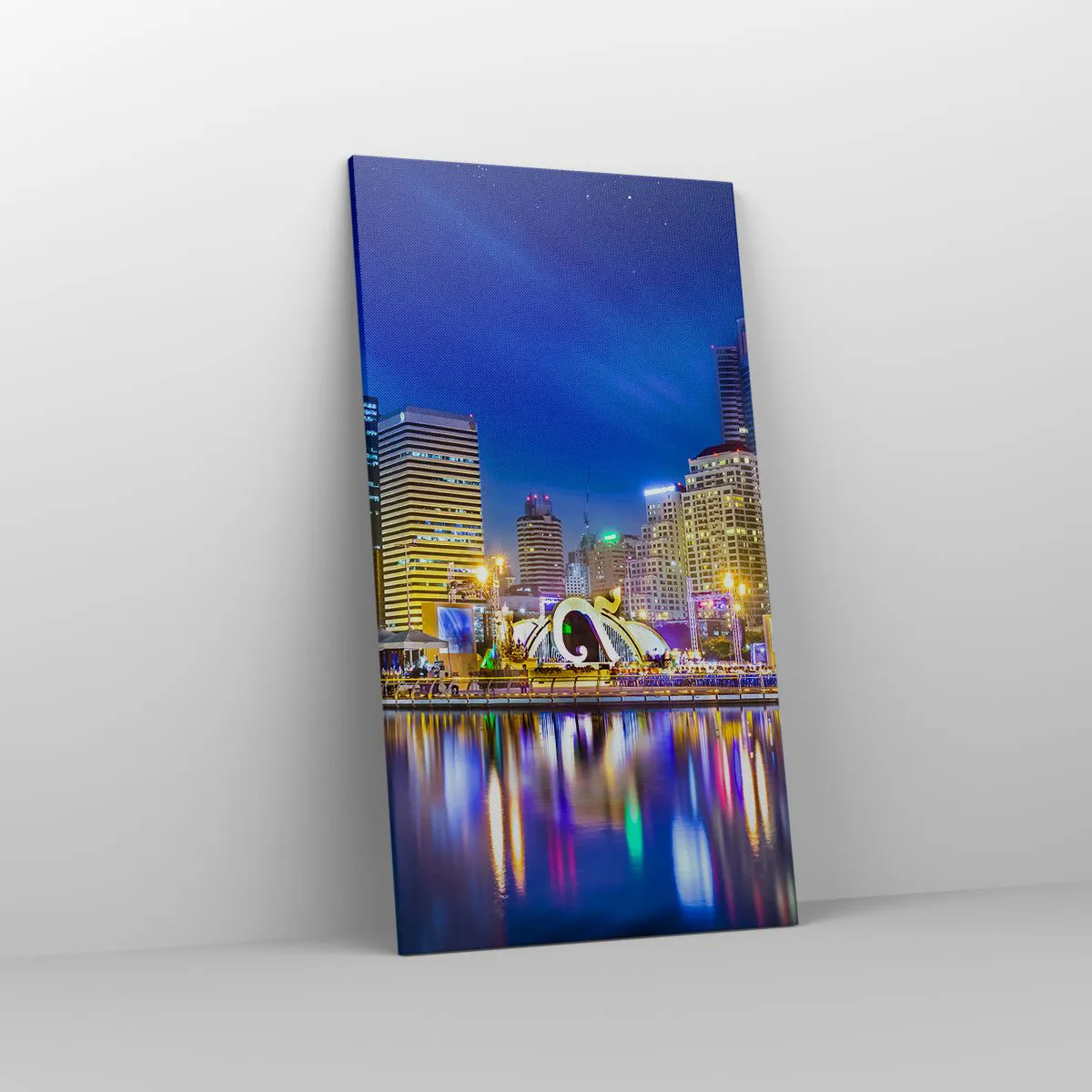 Obraz na płótnie - Tęczowa noc metropolii - 55x100 cm