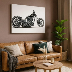 Obraz na płótnie - Stylowy czarny motocykl custom na białym tle - 120x80cm - Dla kochających wolność - Nowoczesna dekoracja ścienna do salonu, kuchni i sypialni ARTTOR