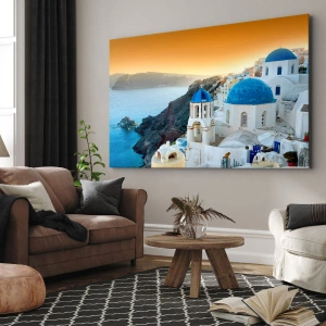 Obraz na płótnie - Santorini - przytulone do skał - 65x120 cm