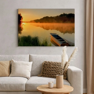 Obraz na płótnie - Wschód słońca nad wodą jak tafla lustra - 100x40 cm
