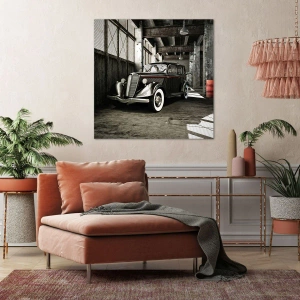 Obraz na płótnie - Stylowy retro samochód w surowym magazynie - 140x50cm - Nieprzemijająca elegancja lat 30. - Nowoczesna dekoracja ścienna do salonu i sypialni ARTTOR
