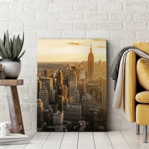 Obraz na płótnie - Panorama Nowego Jorku o zachodzie słońca z widokiem na Empire State Building - 140x50cm - Rosnąc w słońcu - Nowoczesna dekoracja ścienna do salonu i sypialni ARTTOR