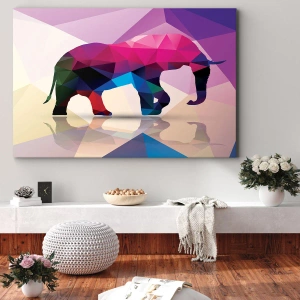 Obraz na płótnie - Geometryczna sylwetka słonia w żywych kolorach - 70x50cm - Kryształowy dinozaur - Nowoczesna dekoracja ścienna do salonu i sypialni ARTTOR