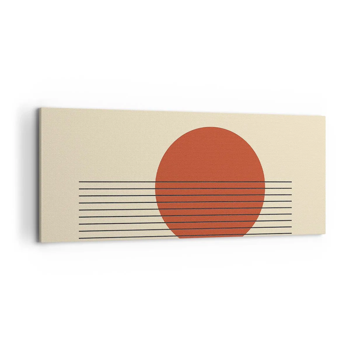 Obraz na płótnie - Abstrakcyjny okrąg w czerwieni z liniami na beżowym tle - 120x50cm - W koło i dalej - Nowoczesna dekoracja ścienna do salonu i sypialni ARTTOR
