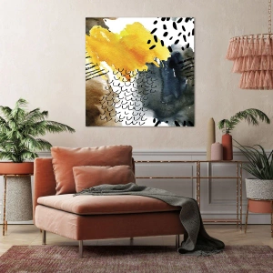 - Nowoczesna abstrakcyjna kompozycja z żółtymi akcentami i graficznymi wzorami. Dekoracja wnosząca energię i styl do nowoczesnych wnętrz.