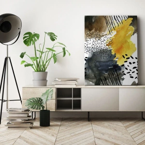 Obraz na ścianę - Spotkanie żywiołów - Abstrakcyjna kompozycja z żółtymi akcentami i graficznymi wzorami