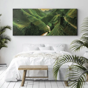 Ten obraz to doskonały wybór dla osób, które cenią sobie naturalne motywy i egzotyczny charakter dekoracji. Zielone wzgórza i subtelne światło zachodzącego słońca nadają przestrzeni unikalnego klimatu, który odświeża i inspiruje. Dekoracja "Wietnamska dolina" doskonale sprawdzi się zarówno w salonie, jak i sypialni, wprowadzając do wnętrza nutę egzotyki.