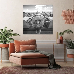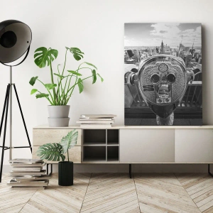 Obraz na płótnie - Monochromatyczny widok przez lunetę na panoramę miasta - 100x70cm - Miasto nad miastami - Nowoczesna dekoracja ścienna do salonu, kuchni i sypialni ARTTOR