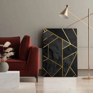 Obraz "Mrok i blask" to elegancka kompozycja, która łączy w sobie wyrazisty kontrast czerni i złota z geometrycznymi wzorami. Minimalistyczny design inspirowany stylem art deco wprowadza do wnętrza luksus i harmonię. Złote linie na tle głębokiej czerni tworzą dynamiczny wzór, który przyciąga wzrok i nadaje przestrzeni nowoczesnego charakteru.