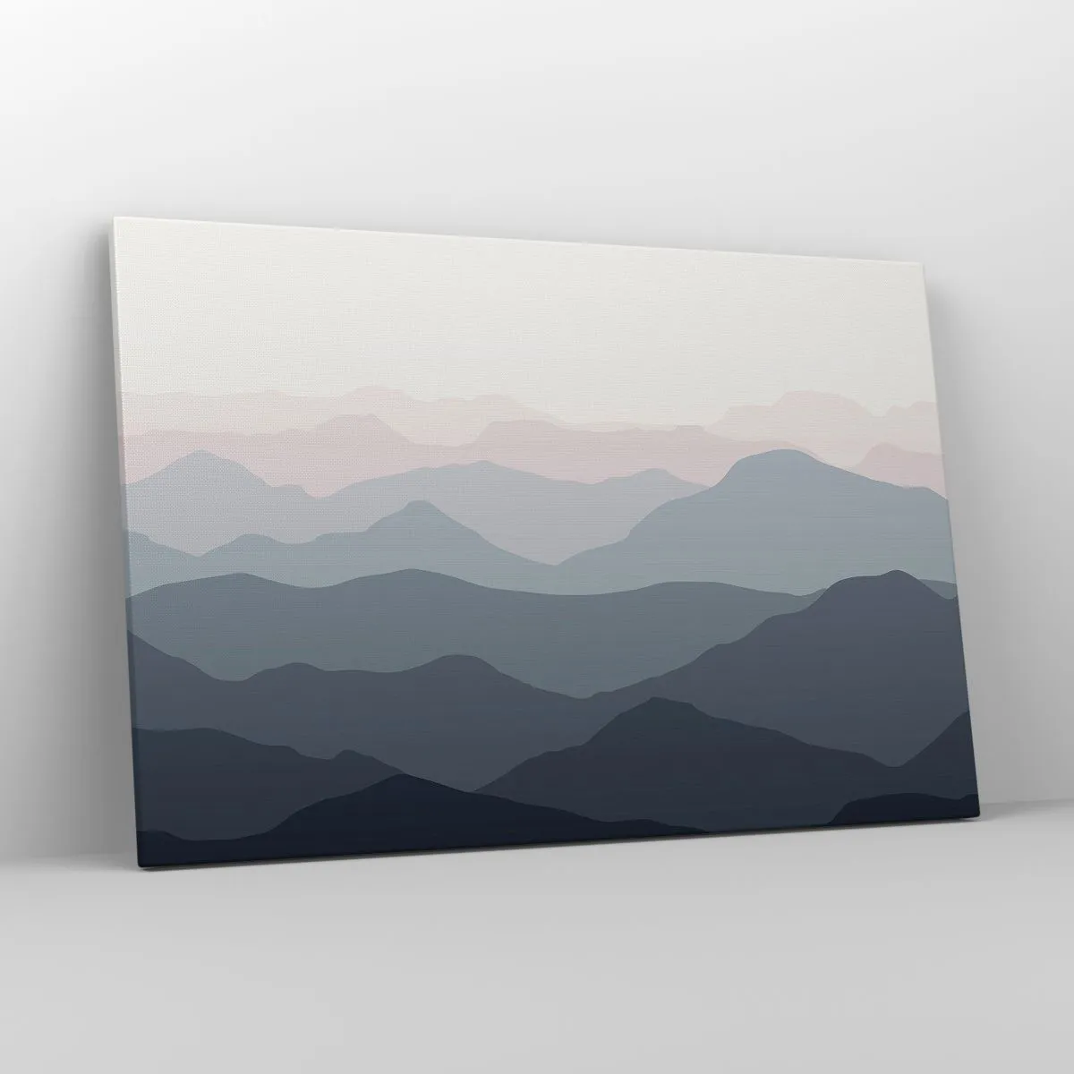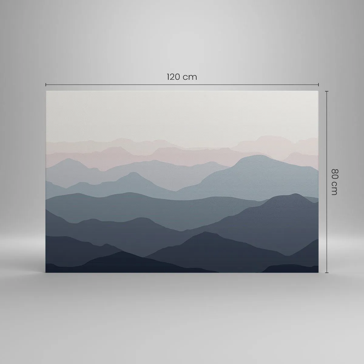 Obraz na płótnie - Subtelne warstwy gór w odcieniach szarości i błękitu - 120x80cm - Fale gór - Nowoczesna dekoracja ścienna do salonu, kuchni i sypialni ARTTOR