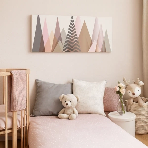 - Obraz przedstawiający geometryczne góry w pastelowych odcieniach, idealnie pasujący do nowoczesnych i minimalistycznych wnętrz. Subtelna kolorystyka nadaje wnętrzu spokojny i harmonijny charakter.