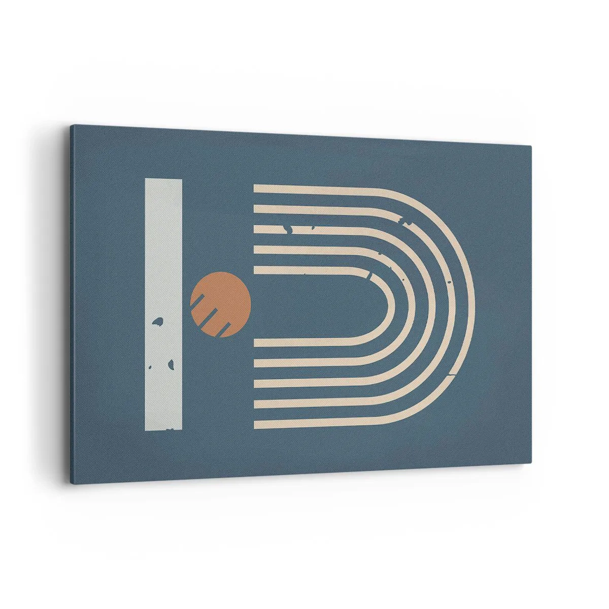 Obraz na płótnie - Geometryczny wzór w odcieniach granatu, beżu i pomarańczu na ciemnym tle - 120x80cm - Geometria na granacie - Nowoczesna dekoracja ścienna do salonu, kuchni i sypialni ARTTOR