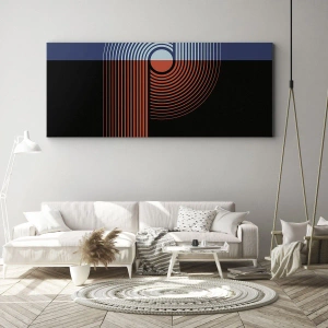 Ten obraz świetnie sprawdzi się jako dekoracja w salonie, biurze czy przestrzeni kreatywnej. Jego minimalistyczny, a zarazem wyrazisty design harmonizuje z różnorodnymi aranżacjami, od industrialnych po klasyczne. Geometryczne formy i intensywne kolory wprowadzają do wnętrza energię i nowoczesny styl.