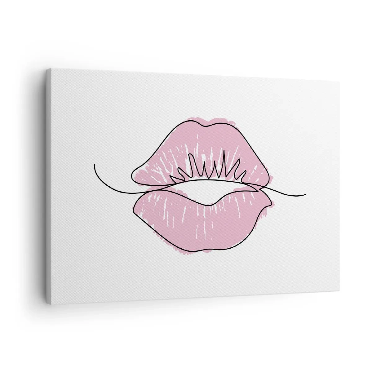 Obraz na płótnie - Minimalistyczny rysunek ust w różowym odcieniu - 70x50cm - Gotowy do pocałunku? - Nowoczesna dekoracja ścienna do salonu i sypialni ARTTOR