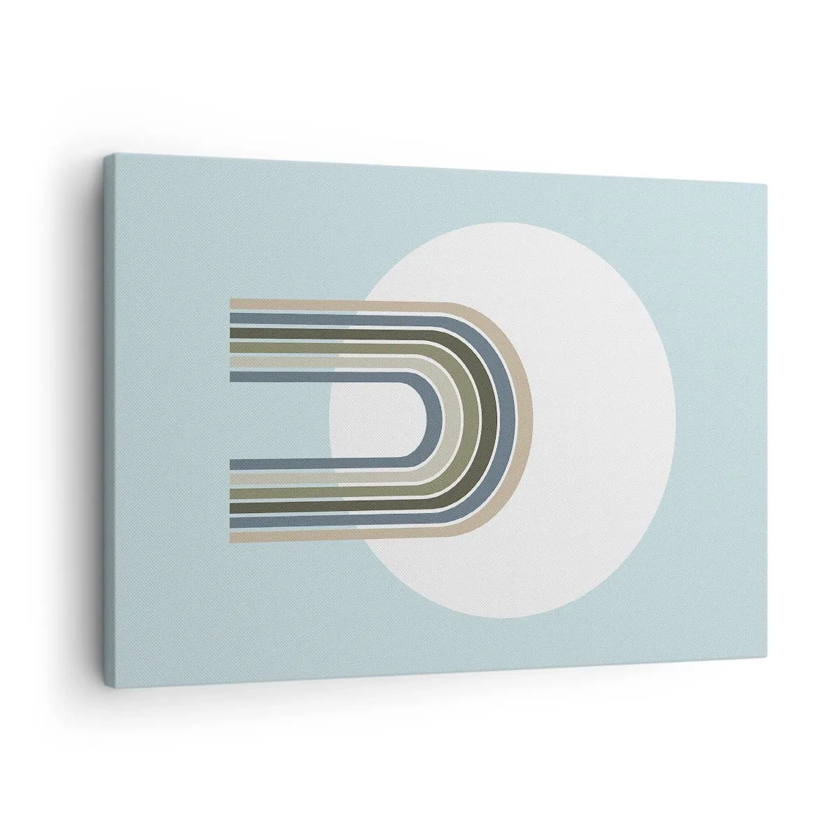 Obraz na płótnie - Minimalistyczna kompozycja z okręgiem i liniami na pastelowym tle - 70x50cm - Nieodparte przyciąganie - Nowoczesna dekoracja ścienna do salonu i sypialni ARTTOR