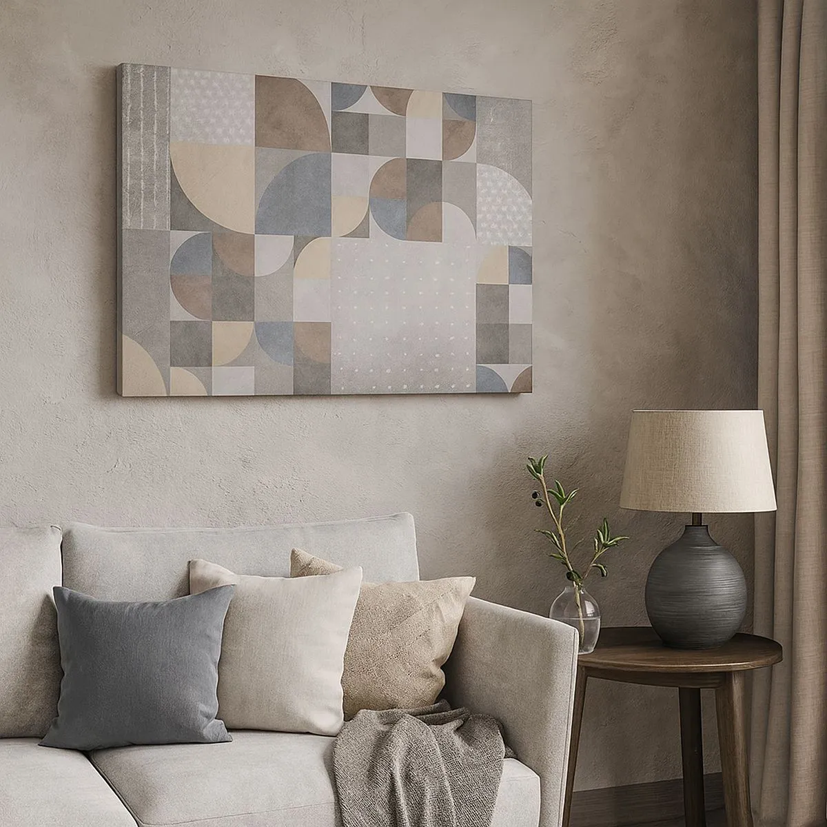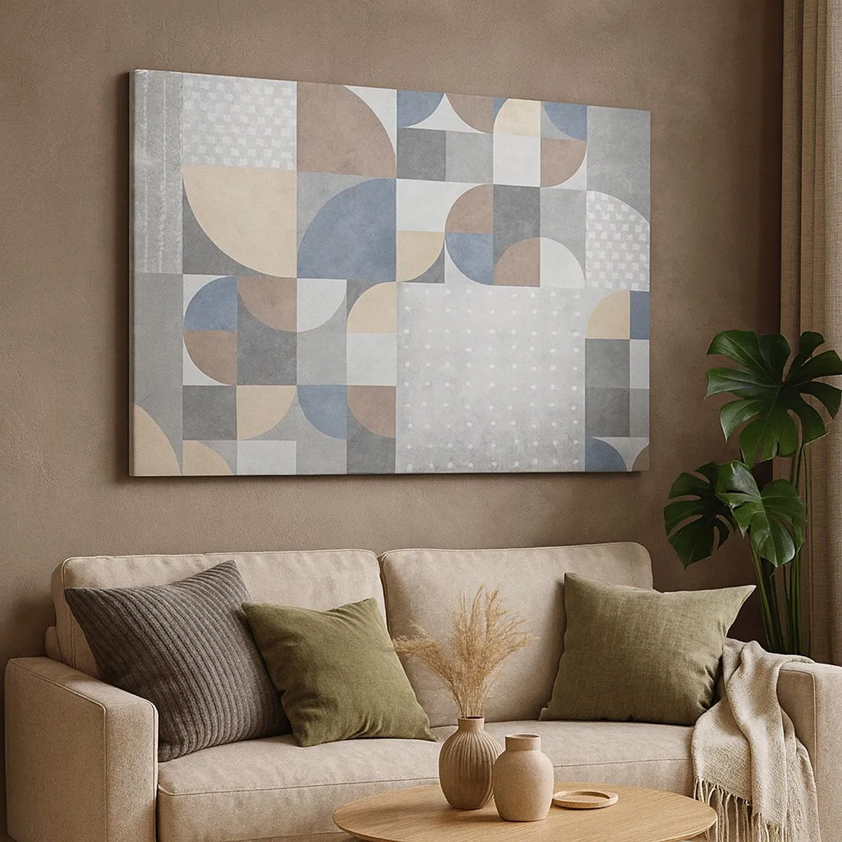 Obraz na płótnie - Geometryczny wzór w pastelowych odcieniach - 100x70cm - Ceramiczna fantazja - Nowoczesna dekoracja ścienna do salonu, kuchni i sypialni ARTTOR