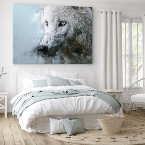 Obraz na płótnie - Portret wilka w akwarelowym stylu - 120x50cm - Poznaj wilczą duszę - Nowoczesna dekoracja ścienna do salonu i sypialni ARTTOR