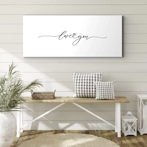Obraz na płótnie - Napis love you w eleganckiej czcionce - 160x50cm - Czarno na białym - Nowoczesna dekoracja ścienna do salonu i sypialni ARTTOR