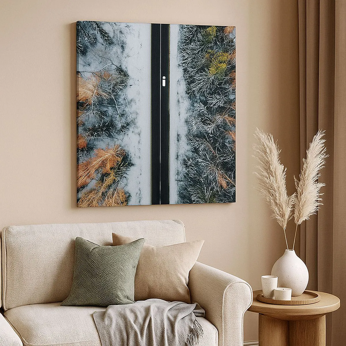 Płótno naciągnięte jest na ramę. Boki i krawędzie obrazu są zadrukowane tworząc kontynuację obrazu. Obraz jest gotowy do powieszenia na ścianę. Każdy produkt posiada zamocowaną do ramy zawieszkę oraz komplet montażowy (śruba + kołek).