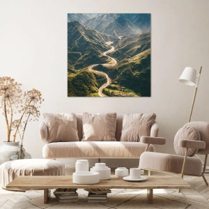 Obraz na płótnie - Górski krajobraz z wijącą się drogą wśród zielonych wzgórz - 160x50cm - Prosto z serca gór - Nowoczesna dekoracja ścienna do salonu i sypialni ARTTOR