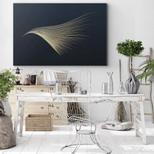Obraz na płótnie - Delikatna linia przypominająca pióro na granatowym tle - 70x50cm - Jak anioła włos - Nowoczesna dekoracja ścienna do salonu i sypialni ARTTOR