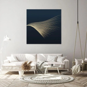 • Obraz przedstawia delikatną linię przypominającą pióro na granatowym tle, tworząc elegancką i minimalistyczną kompozycję. Idealny do wnętrz ceniących subtelność i harmonię.