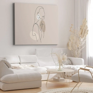 Obraz na płótnie - Minimalistyczna ilustracja kobiety z konturów na beżowym tle - 100x70cm - Ikona dziewczęcości - Nowoczesna dekoracja ścienna do salonu, kuchni i sypialni ARTTOR