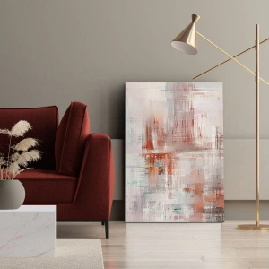 Obraz na płótnie - Abstrakcyjna kompozycja z odcieniami czerwieni i pastelowych barw - 120x80cm - Zamglone. Ale różowe - Nowoczesna dekoracja ścienna do salonu, kuchni i sypialni ARTTOR
