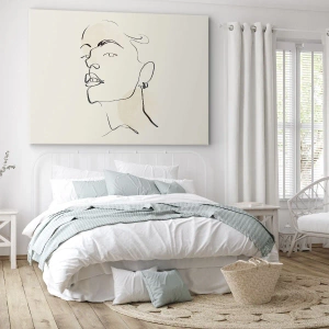 "Dumne spojrzenie" to wyjątkowy obraz na płótnie o wymiarach 70x50 cm w formacie poziomym, przedstawiający minimalistyczny szkic kobiecej twarzy wykonany delikatną, cienką linią. Subtelny charakter dzieła podkreśla jego nowoczesny i elegancki styl, który doskonale współgra z minimalistycznym wnętrzem.