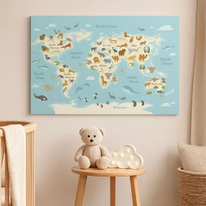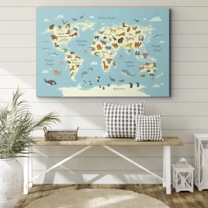 Obraz na płótnie - Mapa świata z ilustracjami zwierząt - 120x80cm - Dobrzy sąsiedzi - Nowoczesna dekoracja ścienna do salonu, kuchni i sypialni ARTTOR