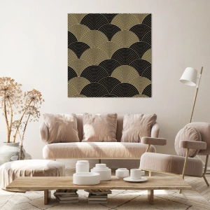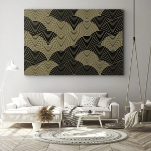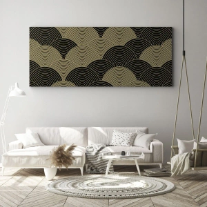 Obraz na płótnie - Wzór w stylu art deco z półokręgami i złotymi liniami - 160x50cm - Jedność w wielości - Nowoczesna dekoracja ścienna do salonu i sypialni ARTTOR
