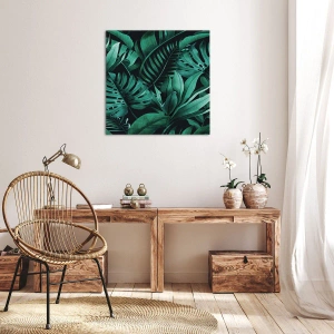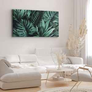 Obraz na płótnie - Tropikalne liście w odcieniach intensywnej zieleni - 120x50cm - Głębia tropikalnej zieleni - Nowoczesna dekoracja ścienna do salonu i sypialni ARTTOR