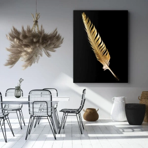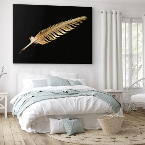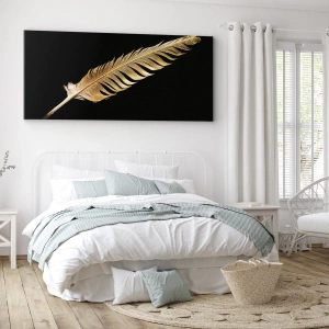 Obraz na płótnie - Złote pióro na czarnym tle - 120x50cm - Nie lada piórem opatrzony… - Nowoczesna dekoracja ścienna do salonu i sypialni ARTTOR