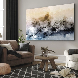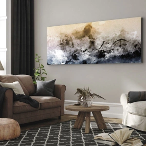 Obraz na płótnie - Abstrakcyjny krajobraz z mgłą i subtelnymi kolorami - 160x50cm - Zatopione w tumanie mgły - Nowoczesna dekoracja ścienna do salonu i sypialni ARTTOR