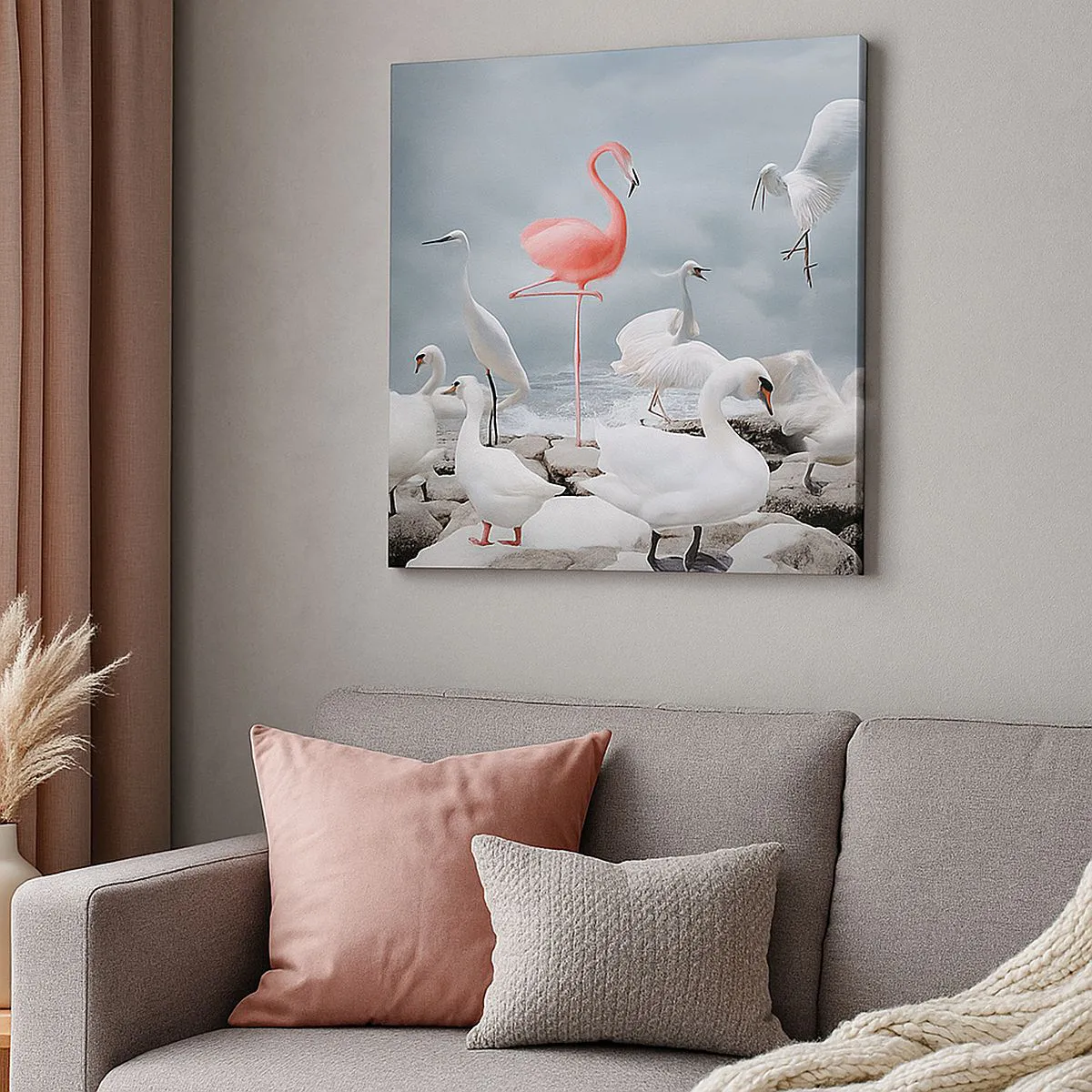 • Flaming, Łabędź, Ptaki, Marynistyczne, Natura, Zwierzęta , Do biura, Do gabinetu, Do jadalni, Do łazienki, Do przedpokoju, Do salonu, Do sypialni, Biały, Różowy, Siwy, Kwadratowy