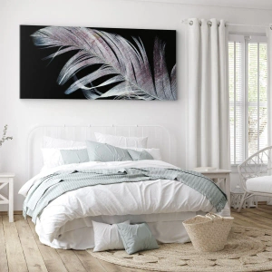 - Artystyczne przedstawienie delikatnego pióra na czarnym tle. Minimalistyczny obraz o subtelnej formie, który wprowadza elegancję i spokój do wnętrza. Idealny do salonu, sypialni lub biura.
