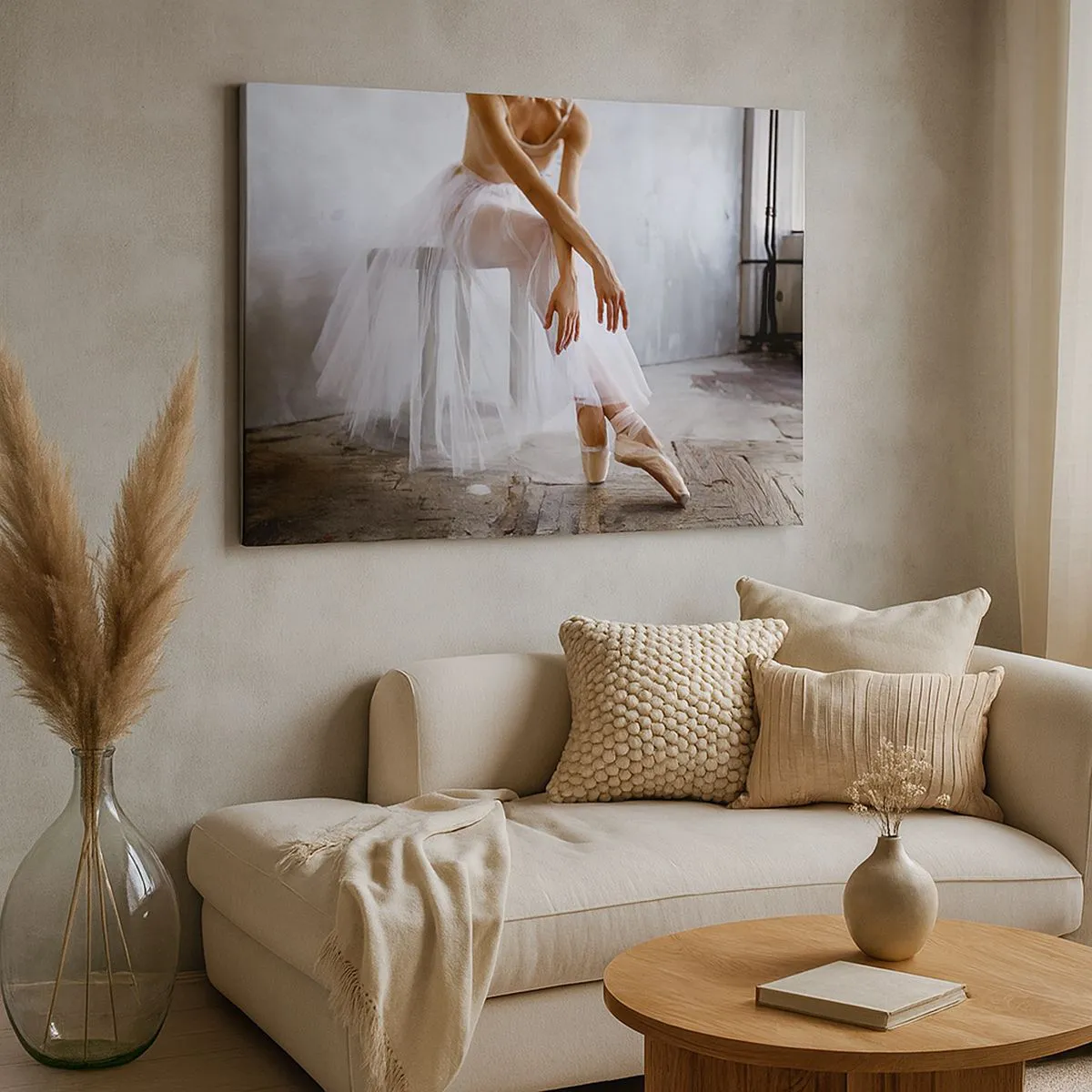 Zanim zabłysną światła rampy to obraz na płótnie, który łączy w sobie delikatność baletowego ruchu z surowością industrialnego wnętrza. Przedstawienie baletnicy w subtelnej pozie wprowadza do wnętrza wyjątkowy kontrast, który zachwyca i inspiruje. Obraz łączy klasyczną elegancję z nowoczesnym stylem, tworząc kompozycję pełną harmonii i emocji.