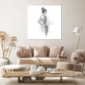 Ten obraz na płótnie doskonale sprawdzi się jako dekoracja w sypialni, salonie czy biurze, wprowadzając do wnętrz spokój oraz elegancję. Jest to dzieło, które przyciąga uwagę swoją prostotą, inspirując do refleksji nad pięknem i subtelnością kobiecej formy.