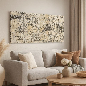 Obraz na płótnie - Abstrakcyjne wzory i linie na beżowym tle - 140x50cm - Czeka na rozszyfrowanie - Nowoczesna dekoracja ścienna do salonu i sypialni ARTTOR