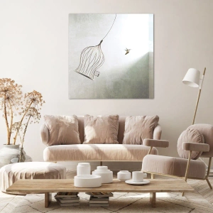 Obraz na płótnie - Ptaszek uwolniony z klatki na tle jasnego nieba - 160x50cm - W swoim żywiole - Nowoczesna dekoracja ścienna do salonu i sypialni ARTTOR