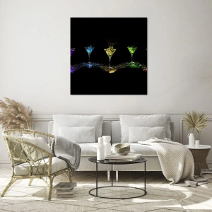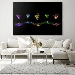 Obraz na szkle - Kolorowe drinki w kieliszkach na czarnym tle - 50x70cm - Kolory radości w kryształowym szkle - Nowoczesna dekoracja ścienna do salonu, kuchni i sypialni ARTTOR