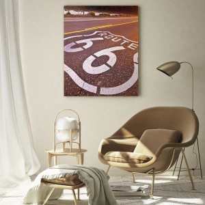 Obraz na szkle - Droga Route 66 o zachodzie słońca - 70x100cm - Słynna droga 66 - Nowoczesna dekoracja ścienna do salonu i sypialni ARTTOR
