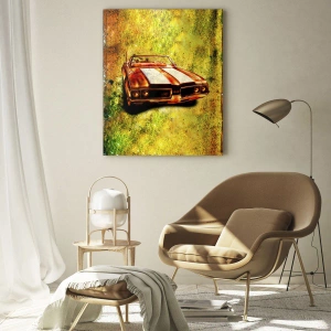 Obraz na szkle - Sportowy kabriolet retro w złotych odcieniach na tle vintage - 80x120cm - Moc zaklęta w kształtach - Nowoczesna dekoracja ścienna do salonu i sypialni ARTTOR