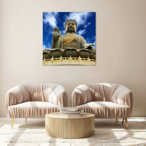 Obraz na szkle - Wielki posąg Buddy na tle błękitnego nieba - 50x70cm - Żyj bez strachu - Nowoczesna dekoracja ścienna do salonu, kuchni i sypialni ARTTOR