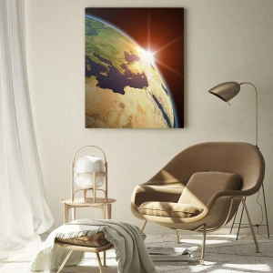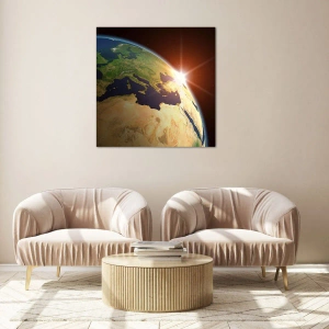 Obraz na szkle - Ziemia oświetlona wschodzącym słońcem z kosmosu - 120x80cm - Wschód słońca - Nowoczesna dekoracja ścienna do salonu, kuchni i sypialni ARTTOR