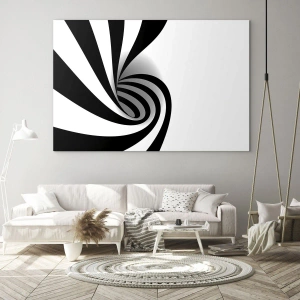 Obraz na szkle - Abstrakcyjna spirala w czerni i bieli o dynamicznym kształcie - 50x70cm - A jednak się kręci - Nowoczesna dekoracja ścienna do salonu, kuchni i sypialni ARTTOR