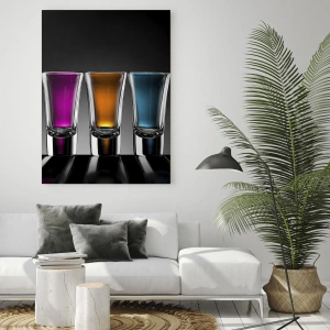 Obraz na szkle - Kolorowe kieliszki na czarnym tle - 80x120cm - Barwy radości - Nowoczesna dekoracja ścienna do salonu i sypialni ARTTOR