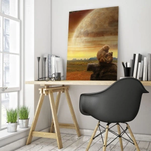 Obraz na szkle - Małpy siedzące na skale na tle ogromnego księżyca - 100x70cm - Miłość wszędzie ta sama - Nowoczesna dekoracja ścienna do salonu, kuchni i sypialni ARTTOR